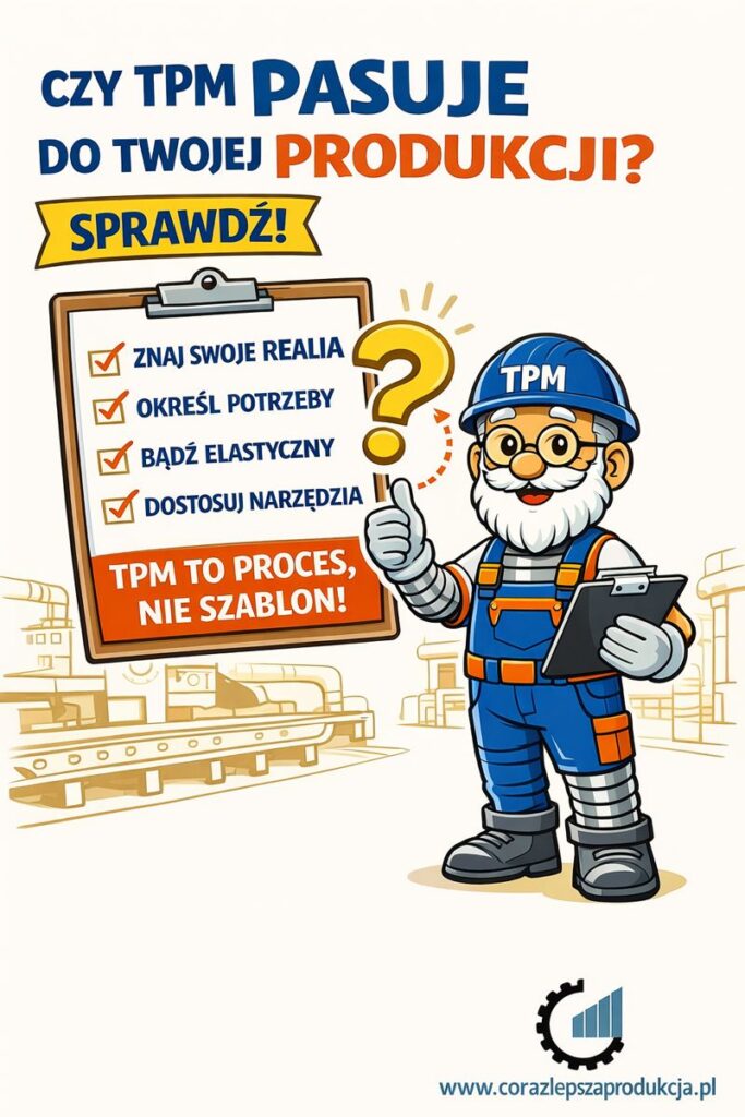 • organizacja pracy ewoluuje – zmieniane są metody pracy, sposoby, ilość obsady. Nie zawsze ma to bezpośrednią przyczynę w systemie TPM, ale zawsze wpływa na jego skuteczność w praktyce.